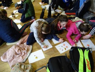 We all had a fantastic time, with great energy filling the room. Gillian Campden organised and guided the class in a discussion on the history, science and benefits of yoga, followed by a yoga class where the students were able to experience breathing exercises, meditations and many Yoga poses. They were then given a talk on the many types of mediation, the science of the mind and how meditation can improve their concentration, focus and help them with stress and difficulties. The students were guided through a simple breath meditation to help them understand how they can concentrate the mind and during lunch we practiced mindful eating with a discussion on how this particular training helps. For the final part of the day we went for a walk in the park bringing awareness to the sounds, smells and wonders of nature, each child gathered a number of natural items and bought them back into the studio to practice creative awareness through sketching and drawing exercises.